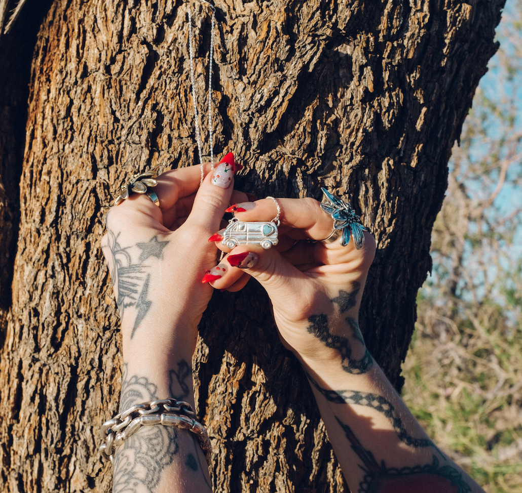 A tribute to one of my very first original designs and my lifelong love for boogie vans. This piece celebrates the magic of life on the road with a nod to bubble windows that made these rolling works of art so unforgettable. I’ve lived in vans off and on, and they’ve always represented freedom, adventure, and a touch of retro cool. The Van necklace is a wearable ode to that spirit, built for dreamers, wanderers, and anyone chasing their own open road. Currently on 16" chain lengths.